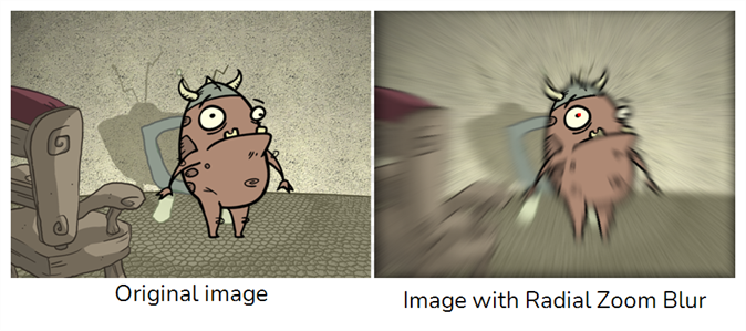 The Radial Zoom Blur effect creates blurs around a centre point, simulating the look of a zooming or rotating camera.