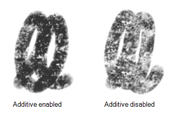 This option layers the texture on top of itself as you scribble overlapping lines in one continuous stroke. If this option is turned off, areas of overlapping lines from a single, continuous stroke will appear the same, in terms of darkness and texture, as non-overlapping areas.