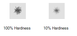 The hardness value corresponds to the softness of the brush tip's edges. The lower the value, the softer the tip edge. The higher the value, the sharper the tip edge. Be aware that some brush tips are not 100% opaque, so they will always appear somewhat soft, even at 100% hardness.