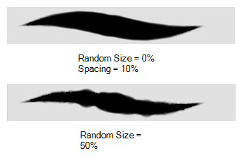 You can create variation between the thick and thin of your brush stroke just by setting the Maximum and Minimum Size values. If you add randomness to the mix, pressure sensitivity from your drawing tablet will still be applied. Light pressure will create random values around the minimum, while heavy pressure will create random values closer to the maximum. The larger the percentage, the larger the range of random variation.