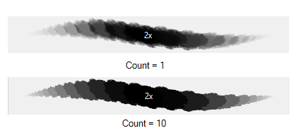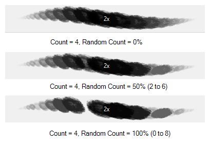 Defines the number of stamps for each space in the brush stroke. This will create the appearance of thicker stamps in the brush stroke.