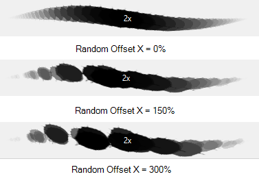 Sets a randomized variation in horizontal distance between the applied stamp and the previous stamp in the brush stroke.