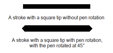 • Heading: The orientation of the brush tip is determined by the direction in which the stroke is drawn. It changes dynamically as the stroke is drawn.