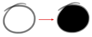 Defines the amount of smoothing Storyboard Pro should perform on the outer contour of the brush stroke. A higher setting will round sharp corners and reduce the amount of control points for the resulting vector shape.