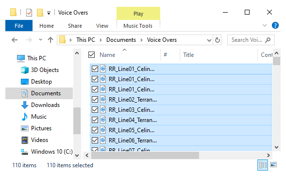 - Shiftを押しながら、選択する最初のファイルをクリックし、次に、選択する最後のファイルをクリックして、その間のすべてのファイルを選択します。