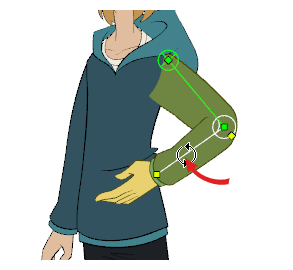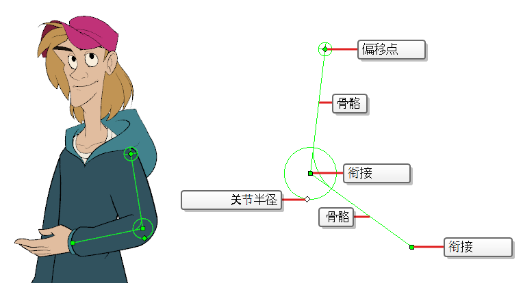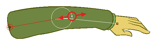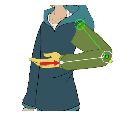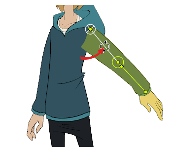 例如,使用“Bone”(骨骼)变形可以使用骨骼连接单一绘图上的手臂,使上臂和前臂可以独立活动,而不必在不同图层上绘制上臂和前臂。 Harmony 将绘图变形,使其看起来有关节。 “Bone”(骨骼)变形的不同部分可以围绕其关节旋转、伸展和缩短,让您具有与在不同图层上为关节生成动画相同的能力,而不必担心部件脱落、轴心点或剪贴轮廓。