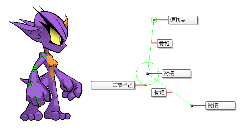 “Bone”(骨骼)变形让您可以创建类似骨骼的结构,其中每个部分都是坚硬的,但是具有灵活的关节。 这对于为角色的四肢(例如手臂或腿)或者有关节的其他身体部位(例如躯干或手指)生成动画最为有用。