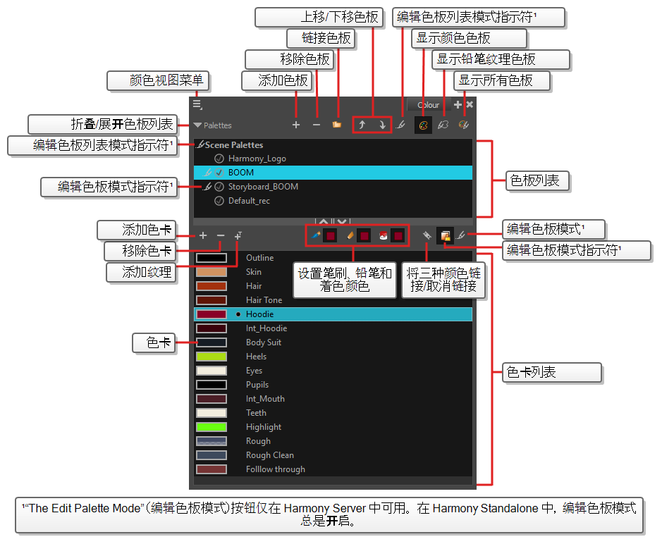 可以在“Colour”(颜色)视图中创建颜色和色板,并将现有色板导入到项目中。 绘图、着色和创建颜色风格时也需要使用“Colour”(颜色)视图。