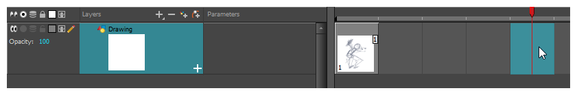 - 在“Timeline”(时间轴)或“Xsheet”(摄影表)视图中,选择希望出现第一张绘图的单元格。