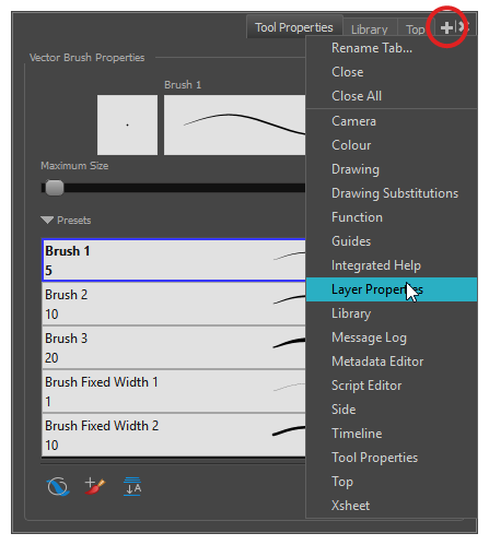 “Library”(文件库)视图用于存储诸如动画、绘图、背景和角色模型之类的元素,以便在不同场景和项目中复用。 还可以使用“Library”(文件库)视图来创建和存储元件,以及存储和导入图像和声音文件