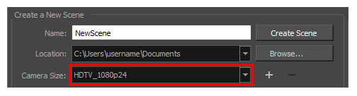 - 要决定在哪个目录中创建场景,请单击“Location”(位置)字段旁的“Browse”(浏览)按钮。