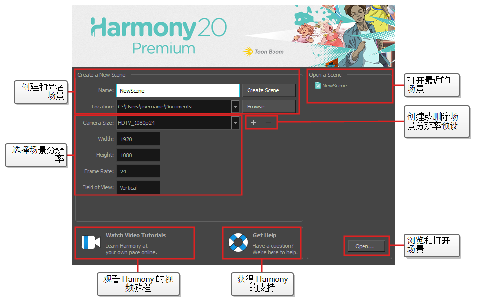 Harmony 启动后,出现“Welcome”(欢迎)界面,在此可以:
