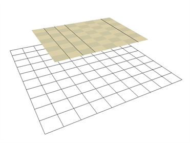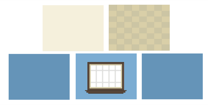 在以下示例中,您将学习如何布置图层,生成一个房间的不同表面从而打造一个现实的 3D 房间。 在开始之前,为简单矩形房间内的每个表面创建一个图层。 然后,在其中每个图层中,绘制一个填色的大矩形来生成墙壁、地板和天花板的表面。 如果您愿意,请随意添加诸如瓷砖、纹理、墙壁饰品或窗户之类的细节,并确保根据图层所代表的房间部分来命名每个图层。