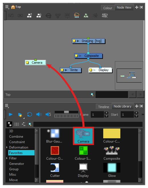 Harmony 中,您可以通过如下方式创建对象动画:分层绘制各个对象,然后将它们放置在整个时间轴上不同关键帧的不同位置,从而创建一条运动路径。 同一原理也可以应用于场景的摄像机,因为它本身就是一个图层。