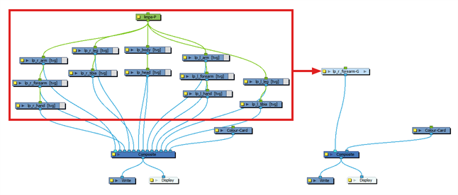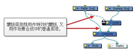 如果需要在场景中的其他位置使用绘图层的未切割版本,可以将绘图层的输出端口连接到合成的其他输入端口或者其他特效或合成(根据需要),从而绕过其连接到的特效。 这将创建新线缆,让图层到其特效的连接不受影响。