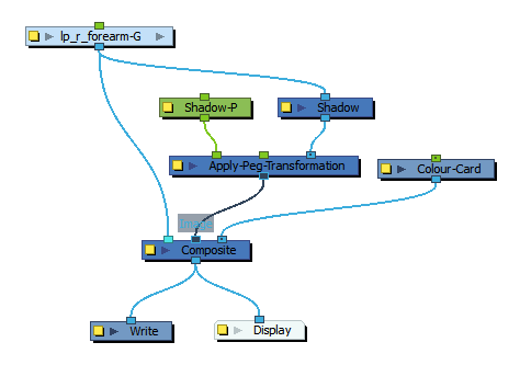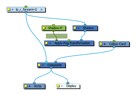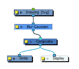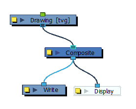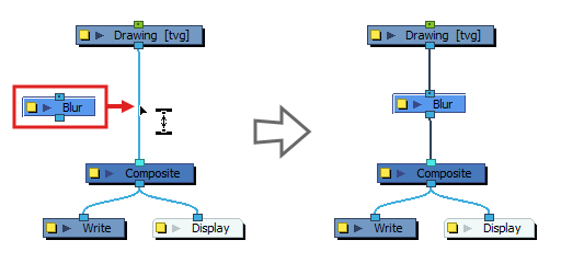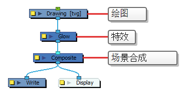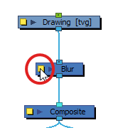在“Node”(节点)视图中,特效必须通过其输入(顶部)端口连接到其意图影响的绘图或合成,其输出(底部)端口必须连接到场景的主合成。