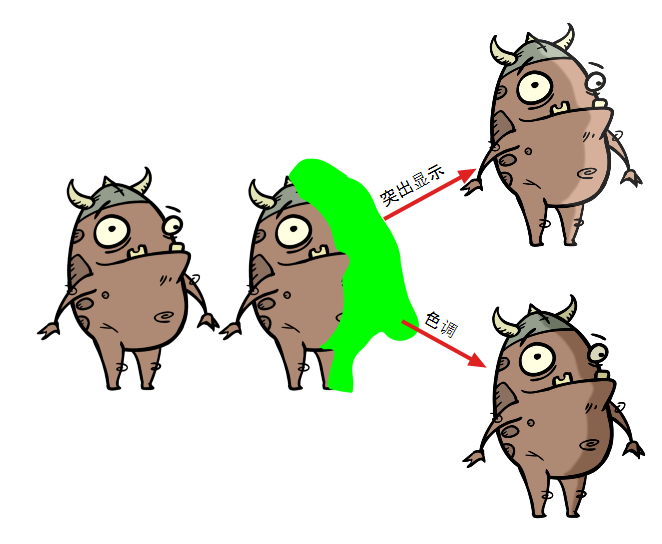 用于蒙版的特效的其他两个示例是“色调”和“高光”特效。 “色调”特效根据其蒙版,将阴影应用于绘图,而“高光”特效根据蒙版,将高光应用于绘图。 除了连接到的绘图以外,这些特效不会应用,因此您可以仅将角色的高光和阴影绘制到蒙版图层中,而不必担心绘制到其轮廓之外。
