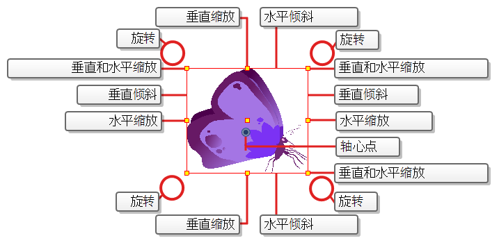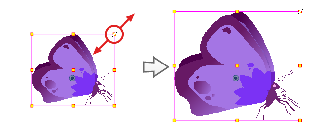 缩放:将光标移动到操作器框的任意黄色控制点上。 当光标变为