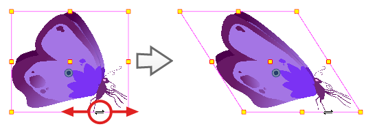 注意 缩放选定对象时,可以按住 Shift 以保留其宽高比。将光标移动到操作器框的垂直边缘之一上。 当光标变为