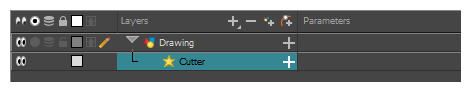 将蒙版图层拖放到“Parameters”(参数)列下方的“Cutter”(切割工具)图层的“Matte”(蒙版)字段旁。