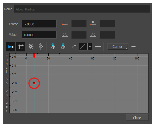您可以使用这个对话框动画化该函数。 底部的函数图用于显示场景中每个帧的函数值。