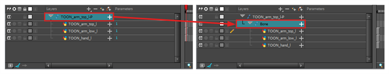 例如,如果您希望为手臂创建变形器,而手臂细分为若干图层,则可以在层级中绑定手臂。在此层级中,上臂是根,前臂是上臂的子级而手是前臂的子级。 然后,如果在上臂创建变形器,它将创建为上臂的父级,因此影响整个手臂。