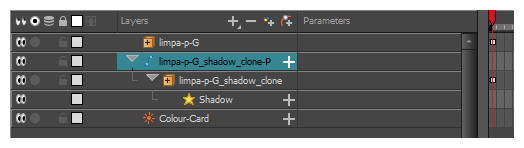 - 在“Timeline”(时间轴)视图中,选择角色克隆的根图层。