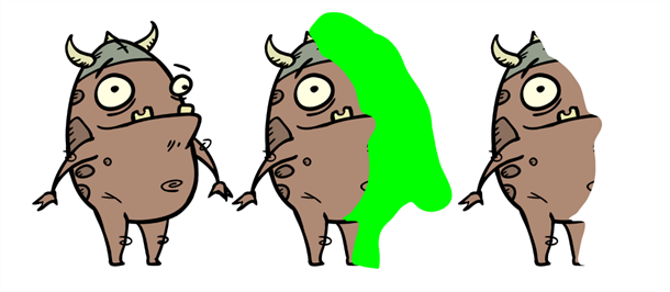 “Cutter”(切割)特效用来切割图像的一部分。 为此,需要将切割工具连接到要切割的绘图以及蒙版图层。 切割工具将利用蒙版图层中绘图的形状,并从绘图层切割出该形状。 如果希望让角色在背景元素之间消失或者如果希望在角色中间切割出一个孔,这会尤其有用。
