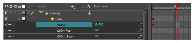 - 在“Timeline”(时间轴)视图的左侧区域,在“Parameters”(参数)列下方,执行以下操作之一来调整该关键帧的值: