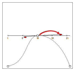 “Set Ease for Multiple Parameters button”(为多个参数设置速率)对话框将聚焦第二个关键帧。 如果这是动画中的最后一个关键帧,则只会出现一个贝塞尔图柄,指向左侧。 如果之后还有其他动画关键帧,则会出现两个贝塞尔图柄,分别指向两侧。