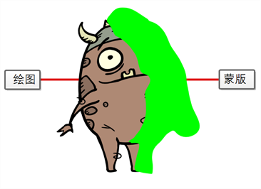 蒙版绘图图层成为“Cutter”(切割工具)图层的蒙版。 此时,与蒙版绘图图层中的画作相交的画作区域被隐藏。