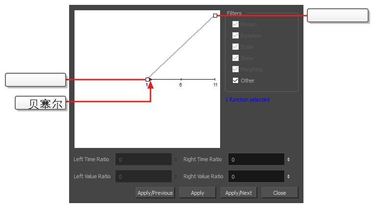 特效中的几乎所有数值参数都可以附加函数。 函数可以添加关键帧,并将每个关键帧设置为特定的值,从而为场景中不同点的不同值设置参数。 在关键帧之间,参数的值将从前一个关键帧的值向下一个关键帧的值过渡。 将绘图层的坐标关联到函数即可实现动画化。 同样,将特效的参数关联到函数也可以实现动画化。
