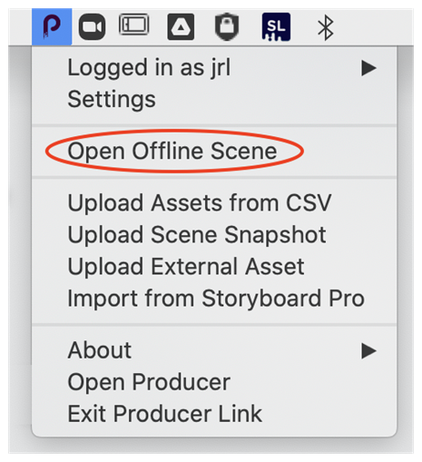 Producer Link 的 Open Offline Scene(打开离线场景)对话框反映用户完成的导出。 它便于用户访问所有导出场景并在离线状态下进行管理。 各场景均可以使用每种场景版本。