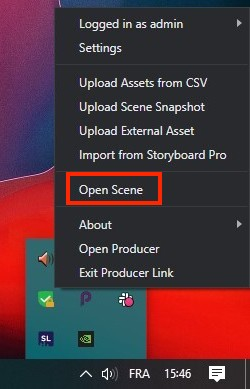 在 Producer Link 顶部菜单,单击 Scenes(场景)菜单