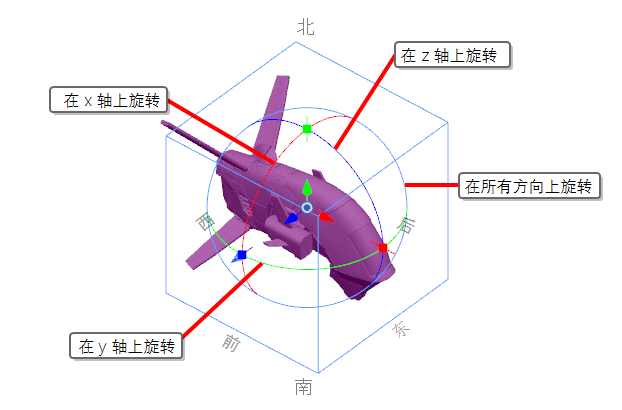 - 若要在 z 轴上旋转模型,请单击并拖动蓝色圆圈。