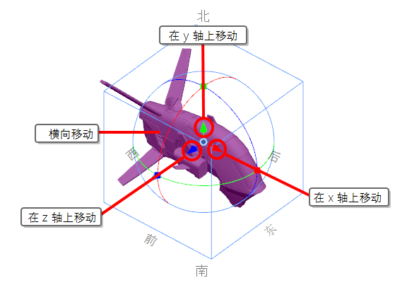 - 若要在 z 轴上位移模型,请单击并拖动蓝色箭头。