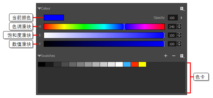 - 使用 H(色调)、S(饱和度)和V(数值)滑块选择想要绘制的颜色。